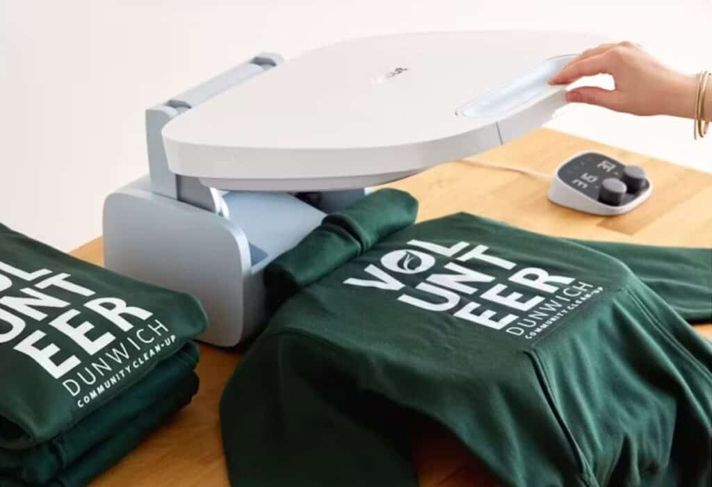 Though the true highlight lies in the fact that it’s a heat press that can easily be stored away to save on space, unlike traditional heat presses.