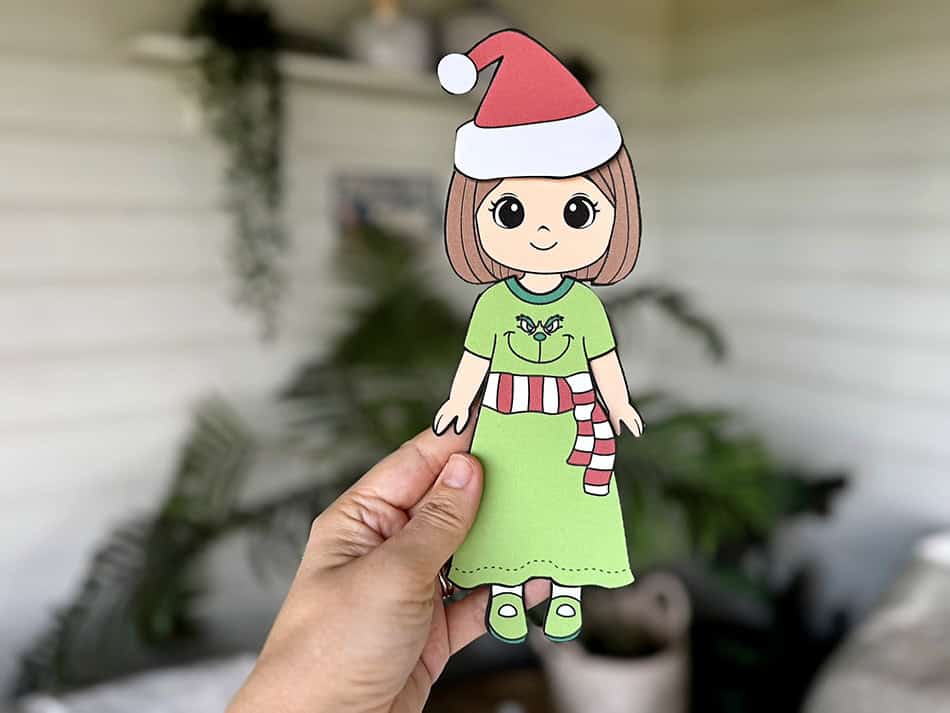 - Your festive Grinch-themed paper doll is ready to celebrate Christmas!