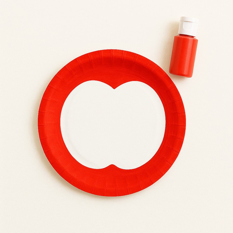 - Take one paper plate and paint it completely red using red paint and a brush. Do a second coat of paint if you need.