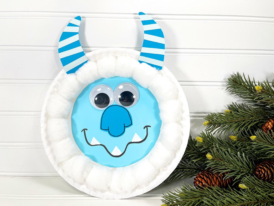 A simple paper plate from the Dollar Store transforms into the cutest yeti craft for kids!