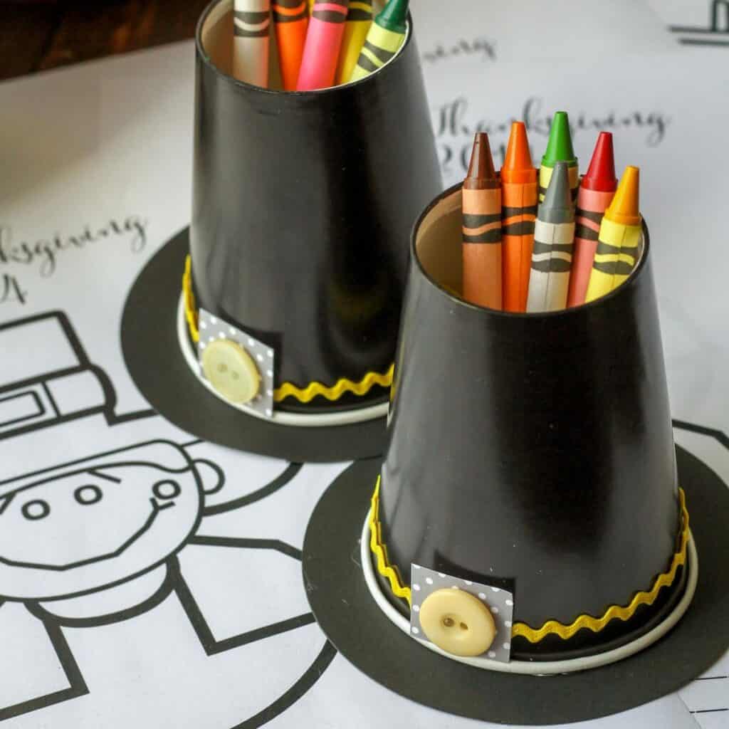 Make functional pilgrim hat cups perfect for holding crayons and art supplies! Find the full tutorial on Let's DIY It All.